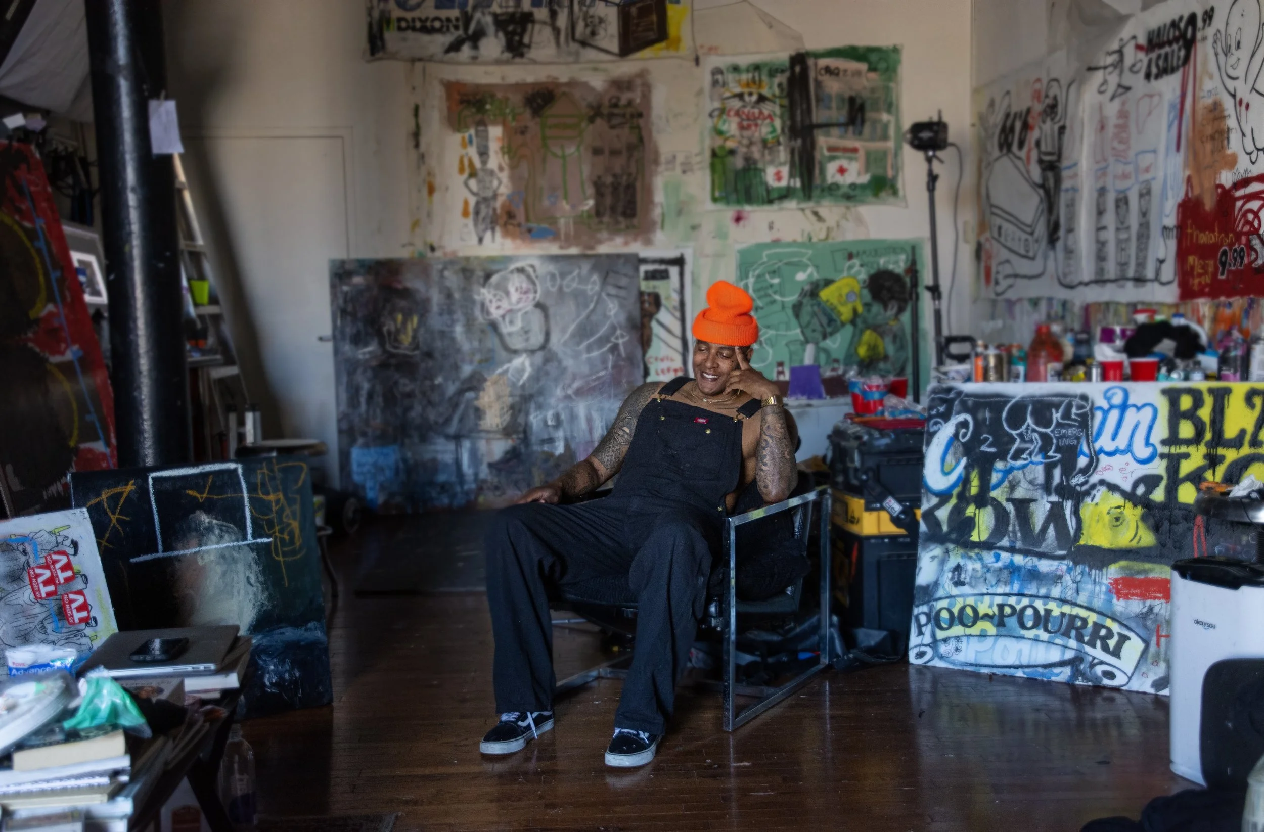 My work boldly states what a lot of artists wouldn’t dare express openly. This unapologetic approach incorporates a mixture of iconography, abstraction, figuration, and ubiquitous symbols to express my experiences, and attempt to reconfigure ideology in regards to racial disparities, social norms, and a tragic history that is often blurred. In my work there's vulnerability and apprehension, urgency and calm, purpose and purposelessness, disillusionment and enthusiasm, seriousness and irreverence, optimism and nihilism. These dichotomies are explored using photography, reconstructed objects, sculptures, and paintings. Aesthetically, my paintings symbolize commonality, and echo the tone of the grittiness of the city I call home. Layers of acrylics, buttery oils, spray paint, and colorful pastels add playful, finely detailed antagonistic critiques about the world around me, while offering viewers a glimpse of who I am. The result of which is often aggressively condescending art that mocks and berates disagreeable viewers in an effort to recondition their perspective through negative reinforcement. Much like the fictional Ludovico Technique, but with the panache of a parent pretending the spoon is an airplane while feeding their child.